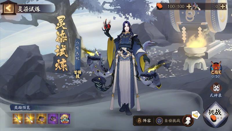 在灵染试炼中,阴阳师大人可以自由选择御魂掉落种类,每日享受50次御魂自选限定加成。当次数用尽后,掉落的御魂种类将从所有可选御魂中随机。挑战成功后,大人将有机会获得彩墨灵、自选御魂、大蛇的逆鳞、青吉鬼等奖励。