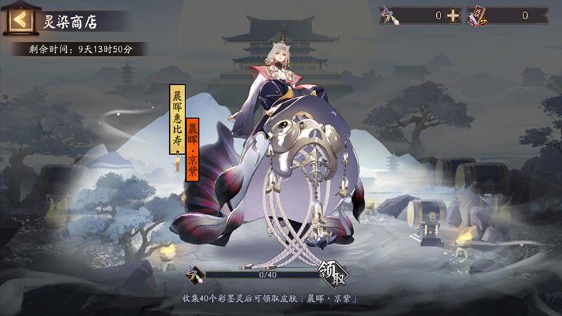 累计获得40个彩墨灵后,即可前往灵染商店兑换SP晨晖惠比寿皮肤晨晖京紫。需要注意的是,当大人兑换SP晨晖惠比寿皮肤晨晖京紫后,灵染试炼副本将不再掉落彩墨灵,月夕梦礼玩法也将关闭。