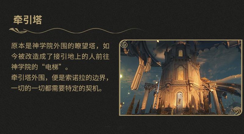 原本是神学院外围的瞭望塔,如今被改造成了接引地上的人前往神学院的“电梯”。 牵引塔外围,便是索诺拉的边界,一切的一切都需要特定的契机。