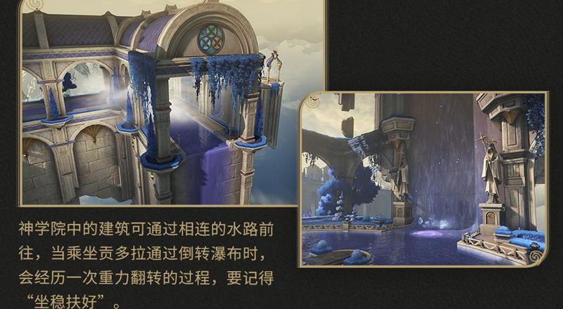 神学院中的建筑可通过相连的水路前往,当乘坐贡多拉通过倒转瀑布时,会经历一次重力翻转的过程,要记得“坐稳扶好”。