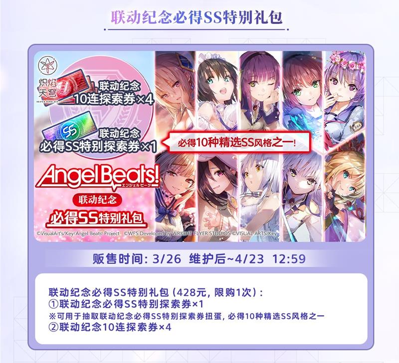 ※联动纪念10连探索券可用于抽取「Angel Beats! 联动扭蛋」、「Angel Beats! 联动扭蛋Ⅱ」,且两个扭蛋的兑换点数及兑换所内容互通。