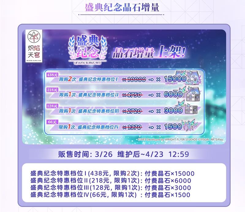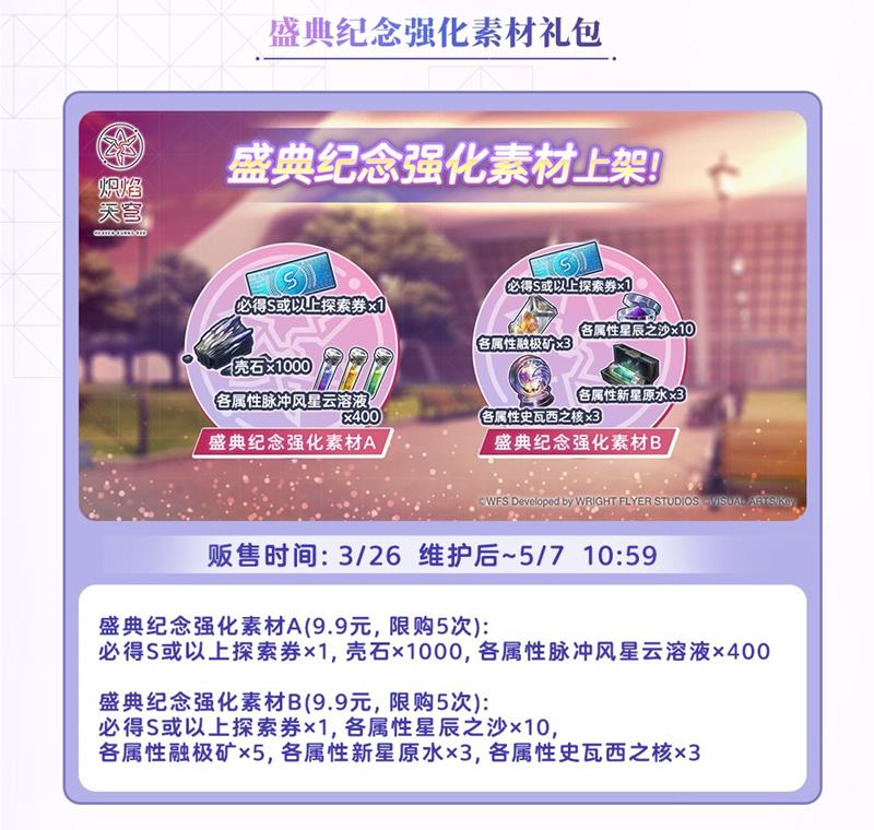 此外,还有四种付费晶石的特惠档位与强化素材礼包上架,还请千万不要错过。