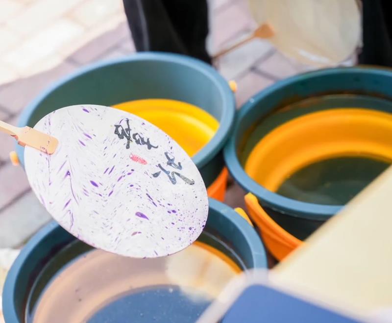陶陶跳花神舞的服装、神态都还原了游戏场景,线下还复刻了桃源乡的市集。玩家们可以在活动现场抽签、制花灯、做非遗漆扇。