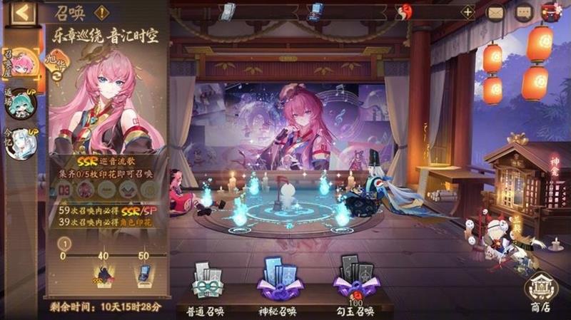 在“乐章巡绕,音汇时空(降临)”中,全新联动限定SSR巡音流歌将降临平安京,大人使用神秘的符咒、勾玉、现世符咒进行召唤,有一定概率获得1枚巡音流歌印花。