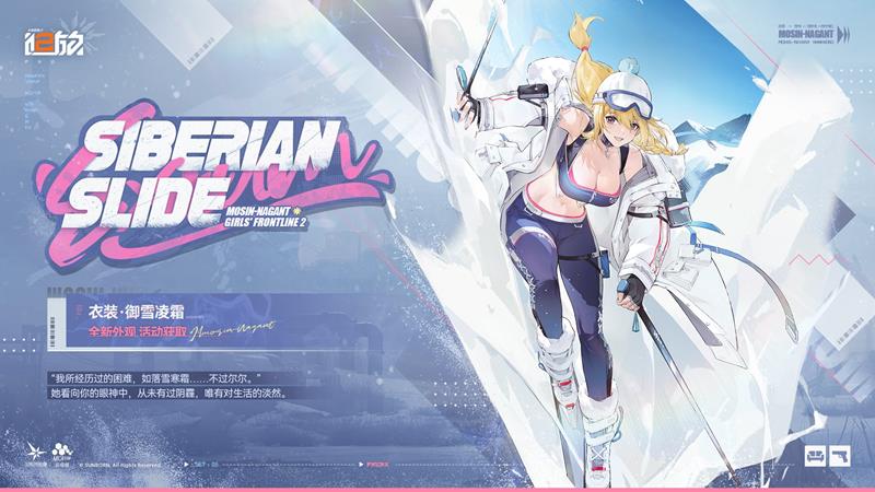 莫辛纳甘的全新外观「衣装·御雪凌霜」也将在本次更新后推出。与众不同的是,这款外观可以通过参与游戏内的活动免费领取,让指挥官们无需花费额外资源即可为莫辛纳甘换上新装。