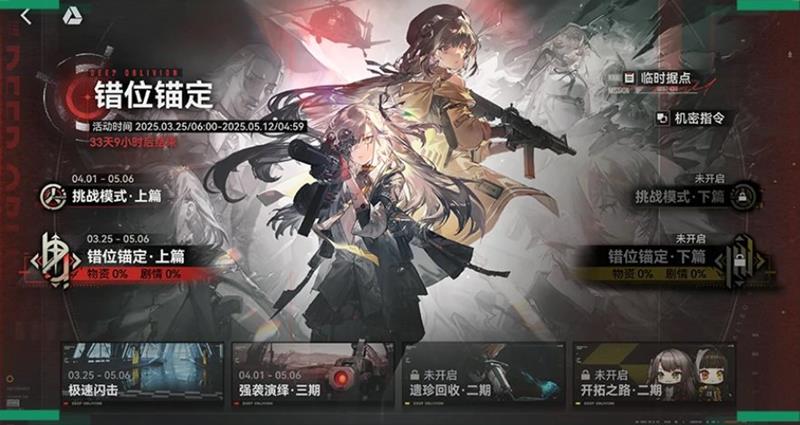本次更新还带来了全新的限时主题活动【错位锚定】上篇,其中包含全新的活动玩法「极速闪击」和「强袭演绎」。这些活动将逐步开放,为指挥官们带来全新的挑战与乐趣,参与活动即可获得「坍塌晶条」、「专访许可」、「访问许可」等丰厚奖励。