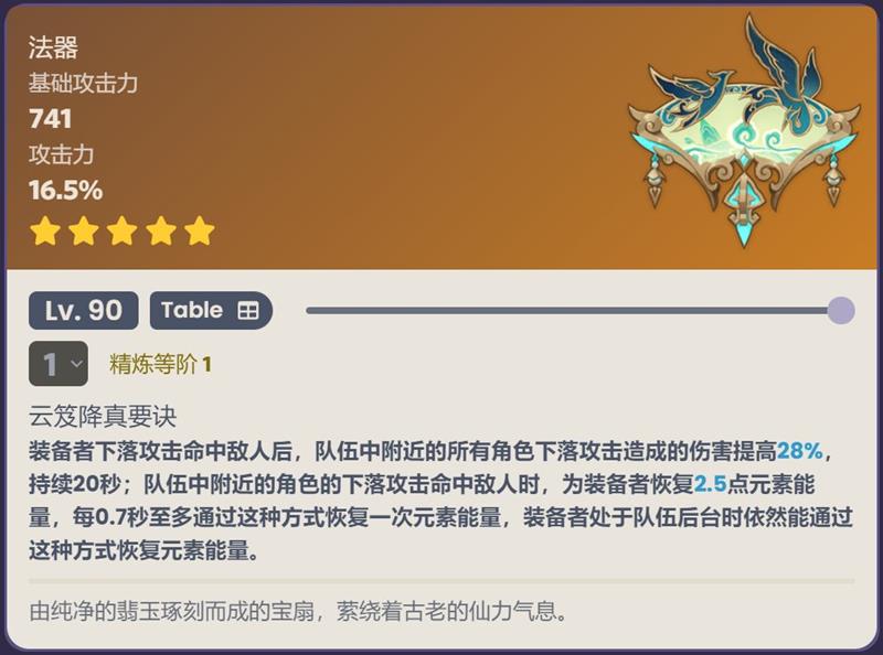 鹤鸣余音是闲云的专属武器,它能为角色提供极高的基础攻击力,这对于提升闲云的下落攻击输出和辅助能力有着显著的增益效果。武器特效还能缓解自身充能压力,进一步提升全队的下落攻击输出能力,这与闲云的战斗定位完美契合,使其在队伍中能够更好地发挥辅助作用,为队友创造更有利的输出环境。