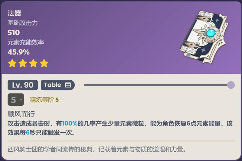 西风秘典的特效可以产生额外的元素能量微粒,这对于缓解全队的充能压力有着积极的作用。不过,在使用这把武器时需要注意堆叠暴击率,以确保武器特效能够稳定触发。当暴击率足够时,西风秘典能够为闲云及其队伍带来持续的能量补充,让队伍的循环更加流畅,尤其适合那些依赖频繁释放元素爆发的队伍配置。