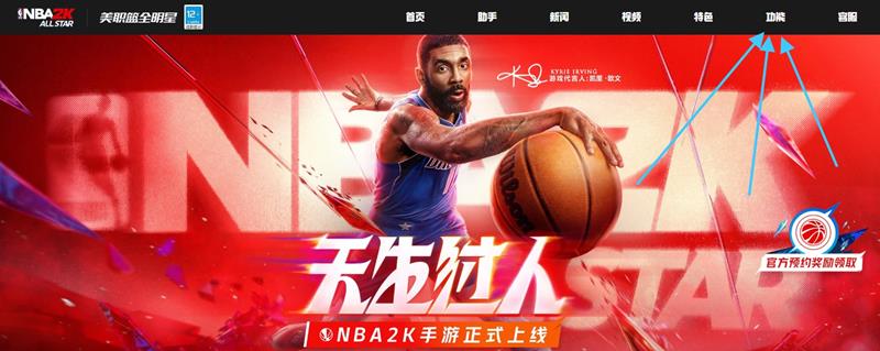 首先我们来到《美职篮全明星》的官方网站,在网站上方可以看到有一个名为【功能】的菜单。