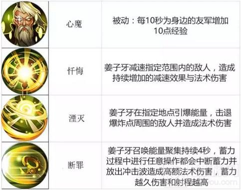 姜子牙是一名让人又爱又恨的英雄,爱是应为他的大招距离超级长,打中一下没了半管血非常得爽!恨就是他非常脆皮,又没有位移技能自保,万一大招打不中,那么姜子牙的存在感将大大降低。