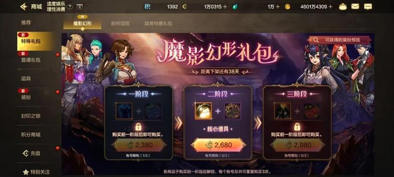 魔影幻形礼包于3月26日版本更新后在体验服上线,采用“分阶段购买+道具拆分”模式,分为三档。