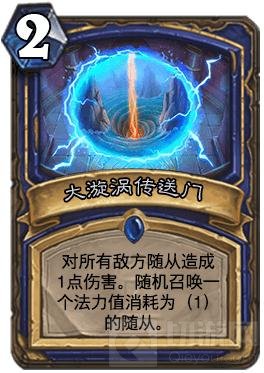 也不知道暴雪是不是铁了心要送萨满入神坛,连续好几个版本都给萨满塞了许多好卡,如今的大旋涡传送门和一会将要介绍的幽灵之爪也在其中。首先它就功能性来说完爆了魔爆术,实在不行还能当个1费随从用,其次它和萨满的相性非常之好。萨满得天独厚的英雄技能使得他可以随时召唤可能出现的法伤图腾,配合之后能够打出相当于一个奉献的伤害,这已经能够帮助解决绝大多数的场面问题了。如今的萨满正是需要一些不需要过载的解场法术,使得自己的解场不再那么笨拙与吃亏。