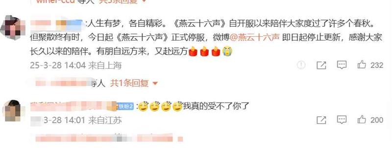 对于此次更新延时不少网友调侃表示:“生有梦,各自精彩。《燕云十六声》自开服以来陪伴大家度过了许多个春秋。但聚散终有时,今日起《燕云十六声》正式停服……”