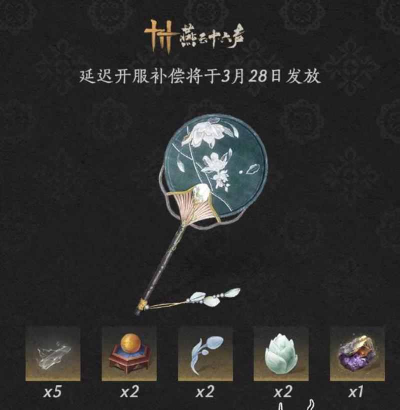 为表示歉意和感谢,我们将在开服5小时内,通过邮件奉上:「挂饰·绿歌扇」*1、「袅袅之音·绑」*5、限时「枕中散」*2、81阶「定音石·归鸿」*2、81阶「转律石·归鸿」*2、81阶「变音石·归鸿」*1,请在开服后前往邮件查收。