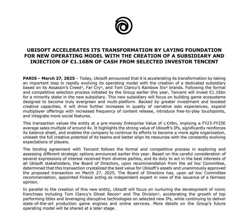 育碧官方也迅速做出了回应,他们感谢腾讯的支持,并表示会与腾讯保持密切合作,共同推动公司的发展。育碧承诺,会保持公司的独立性和创意自由,继续为玩家带来高质量的游戏作品。