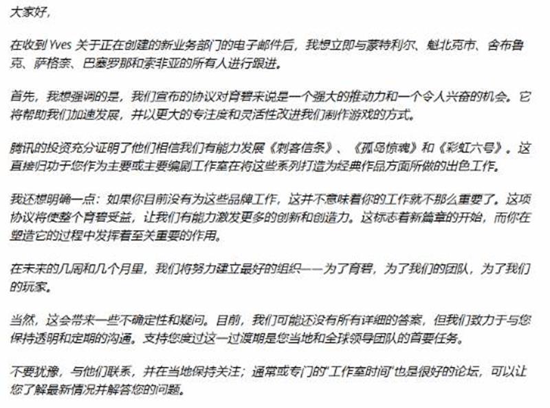 腾讯表示,此次收购股份的目的是为了支持育碧的长期发展,而不是进行大规模的裁员。腾讯强调,他们对育碧的创意能力和游戏开发实力充满信心,并希望双方能够在未来的合作中实现互利共赢。