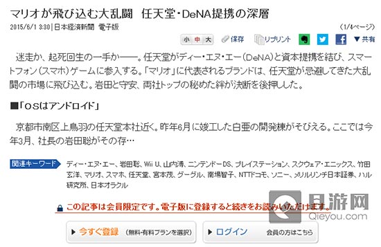 《日本经济新闻》今日公开了一篇针对任天堂与DeNA合作的采访,其中爆料了不少正在开发中的新主机“NX”。一位相关人士透露,任天堂预定在未来2016年推出的新游戏主机代号“NX”将采用安卓操作系统,并声称“这对于任天堂的历史来说是一个大革命”。