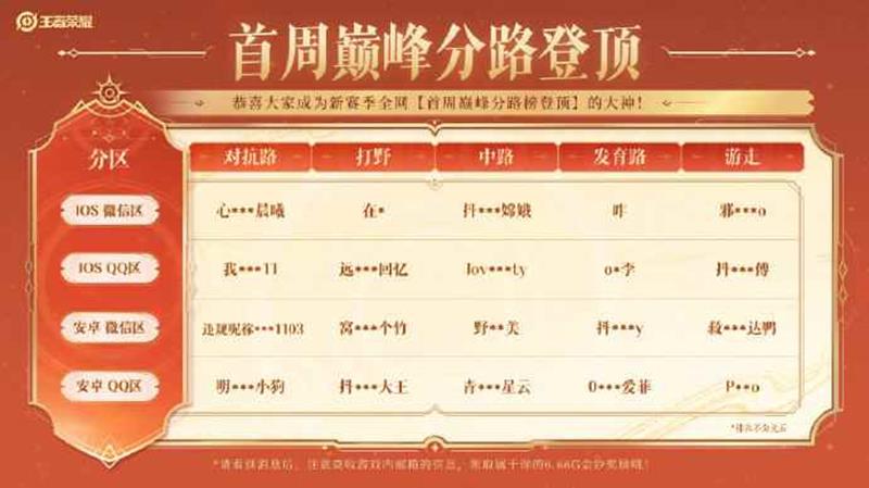 今天也是分路巅峰第一结算的时间,首批分路巅峰第一已经出现。