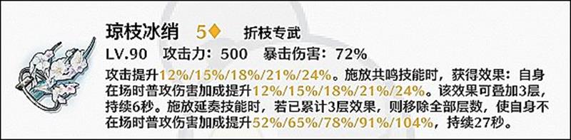 【琼枝冰绡】能提升攻击力并在释放共鸣技能后提升普攻伤害;