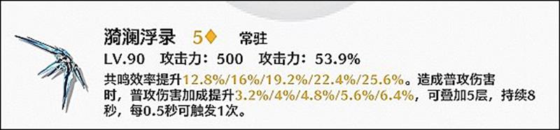 【漪澜浮录】则能提升共鸣效率,造成普攻伤害后可获得普攻伤害加成。