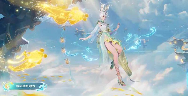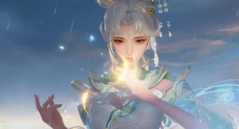 【展示动画设计】公孙离踏云行雨,素手轻扬。天音铃转,引风雷之势,纳万顷烟雨于铃端,凝作一柄潋滟水伞。霎时云收雨霁,碧空如洗,唯见伞面珠玉流转,映日生辉。