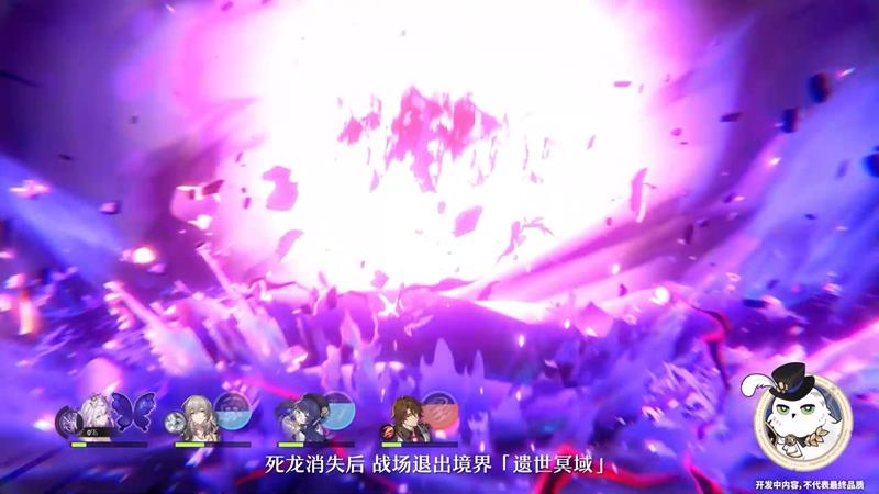 死龙生命值低于一定水平时,释放技能会触发“灼掠幽墟的晦翼”效果,消失时对敌方随机单体造成多次量子伤害并回复全队生命值。死龙行动次数耗尽或生命归零时自动消失,退出“遗世冥域”境界。