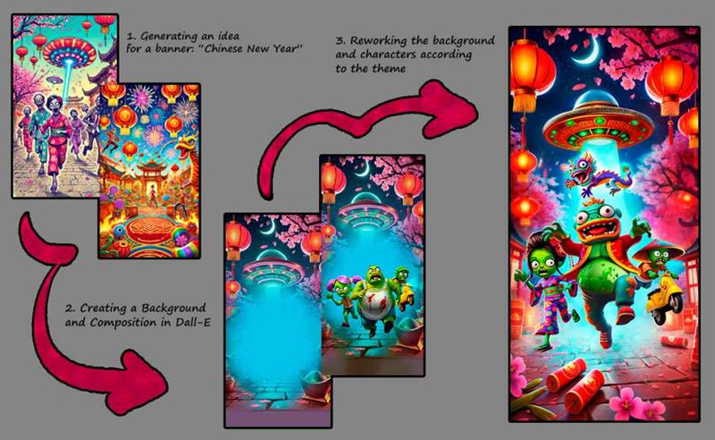 开发团队使用生成式AI创造的概念美术和游戏内模型