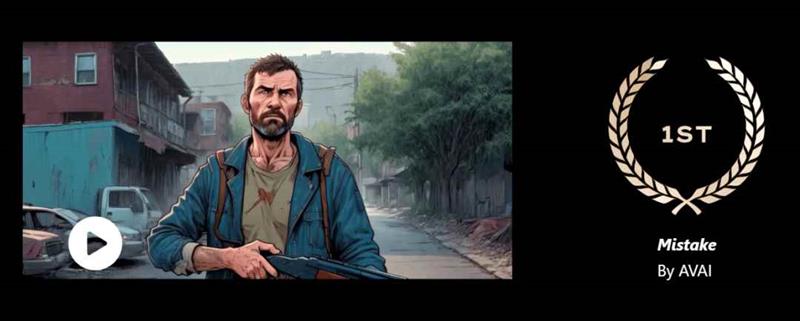 在我们团队内部,许多同事甚至会利用空闲时间研究AI,制作非商用的AI生成视频,其中部分作品还赢得了高度认可。例如,我们的项目《Steampunk Ironman》在AI节(AI festival)上获得第4名,而电影短片《错误》(Mistake)讲述了一个僵尸末世故事,更是在AI Filmmaking Initiative Project Odyssey竞赛的渲染和视觉特效类别中荣获冠军。
