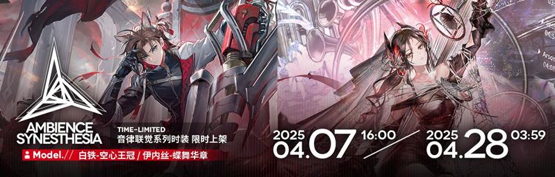 此外,【音律联觉】系列新装将在活动期间限时上架,包括伊内丝的【蝶舞华章】和白铁的【空心王冠】等。同时,采购中心也将限时售卖指令重构寻访包、医疗芯片礼包等组合包,为刀客塔提供更多选择。