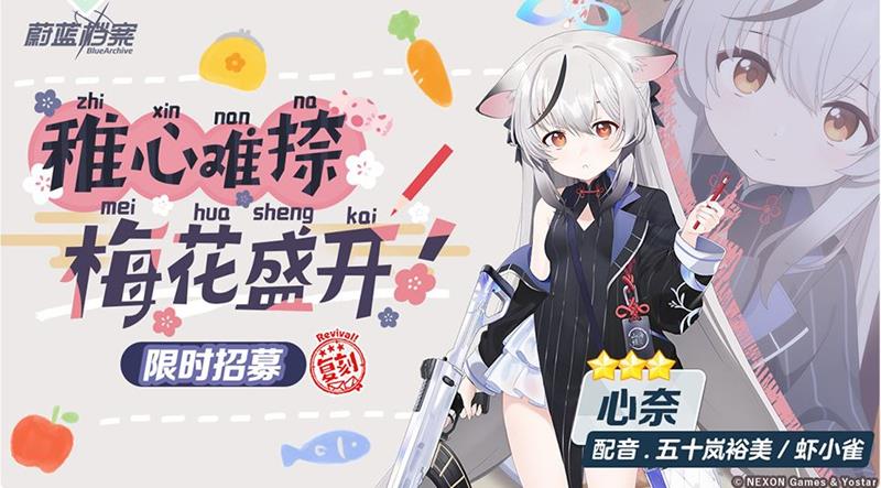 同样在4月10日14:00开启,持续到4月15日13:59的还有限时复刻招募【稚心难捺,梅花盛开!】,期间3星成员“心奈”的招募概率得到提升。限时复刻招募【全年无休 沉迷研啾!】也在4月10日14:00开始,到4月15日13:59结束,3星成员“纱绫(便服)”的招募概率在这段时间内会提升。