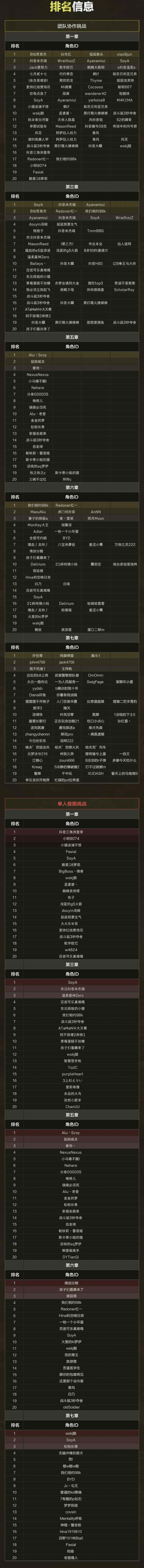 前排排名玩家信息: