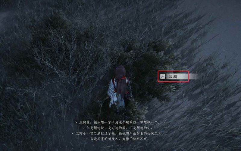 3、跟随卫阿曼移动,在草地上使用回溯找到听风旗: