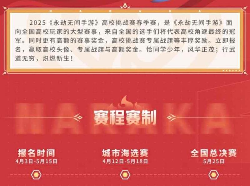 永劫无间手游首届高校春季赛正在报名中,小编带来永劫无间手游首届高校春季赛永劫手游赛程安排,包含重要时间节点,玩家们必看,一起来看看吧。