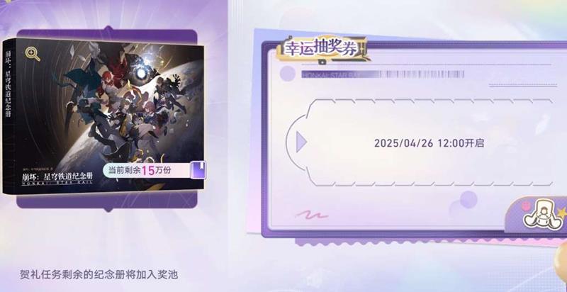 紧接着是“幸运抽奖”阶段,从4月26日12:00开始,持续到5月10日23:59。在这个阶段,开拓者们将有机会通过抽奖获取《崩坏:星穹铁道》纪念册。总计15万份纪念册将通过抽奖的方式发放,如果“贺礼任务”阶段有剩余纪念册,也会加入到这个阶段的奖池中。开拓者们可以通过完成“贺礼任务”来获取额外的抽奖次数,增加自己获取纪念册的机会。