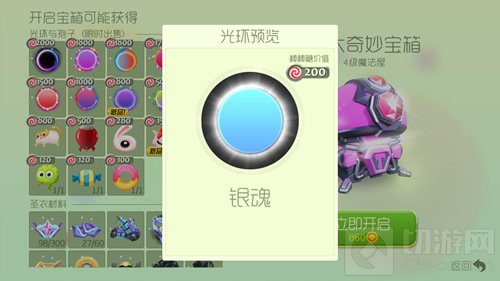 目前,大家想要获得银魂,只能通过开启奇妙宝箱获得,普通的奇妙宝箱也能获得哦,但是几率不大,想要快速获得银魂,大家就要充值金蘑菇,开超大奇妙宝箱。一般像这种比较便宜不贵的光环,在超大宝箱中很容易就开出来的,大家你开2个箱子,就一定会开出它。