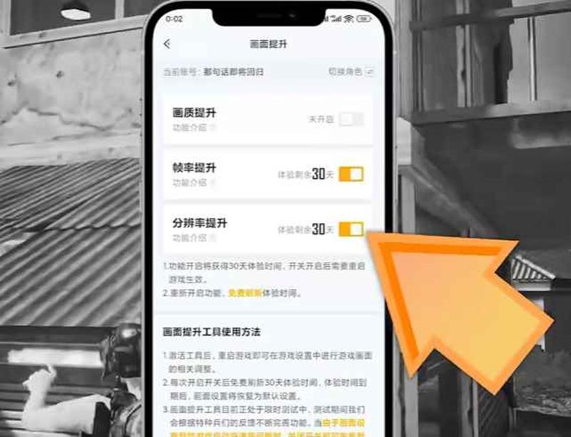 在“画面提升”界面中开启对应功能,系统会提示玩家重启游戏以使功能生效。另外画面提升功能目前处于限时测试阶段,玩家可以免费体验30天。
