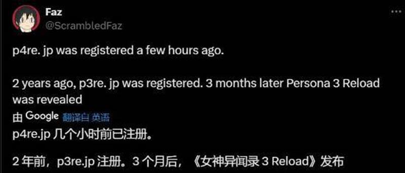 近期,关于《女神异闻录4重制版》的消息引发了广泛关注。据网上一些信息曝光,开发商Atlus已注册了p4re.jp域名,这被看作是《女神异闻录4重制版》即将公布的有力证据,我们来一起看看。