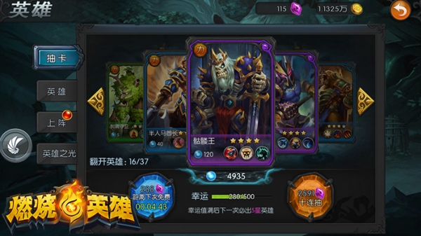 抽卡:在游戏中,玩家可以得到英雄卡牌的途径,只有英雄界面中“抽卡”以及活动赠送2种方式。而抽到的英雄卡牌分为不同星级等级、不同属性、不同定位。根据自己的喜好或者选择,来进行召唤。