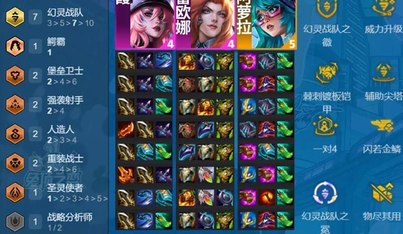 羁绊效果:幻灵战队的羁绊效果主要体现在每个层级可以挑选出一件随机武器,这些武器在战斗中周期性开火,为战局增添变数。此外,幻灵战队的弈子们还会获得护甲、魔抗和伤害增幅。