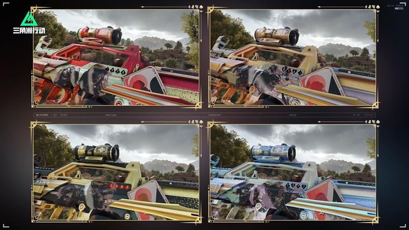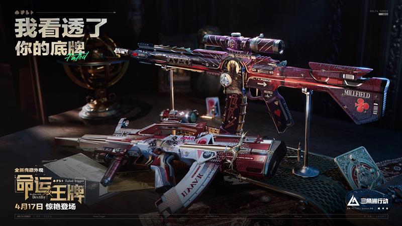 典藏外观包含【K416突击步枪-命运】及【QBZ95-1突击步枪-王牌之剑】两款武器外观,拥有多样化的纸牌主题外观设计,枪身巧妙融合了不同纸牌花色,并搭配流光效果,呈现出无与伦比的视觉享受!