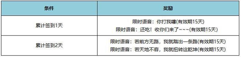 限时语音包:4月17日版本更新后至4月23日23:59期间,玩家参与游戏内的“送限时语音”活动,累计签到即可免费领取哪吒合作官宣限时系列语音。