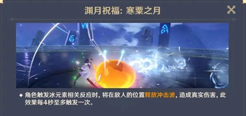本期渊月祝福是角色触发冰元素相关反应后,会在敌人位置释放冲击波,造成约16000±真实伤害,该效果每4秒至多触发一次。11层上半的怪物阵容较多,强烈推荐携带风系聚怪角色,优先选择温迪,其次万叶或砂糖等聚怪角色,同时带上一名冰系角色来触发渊月祝福。