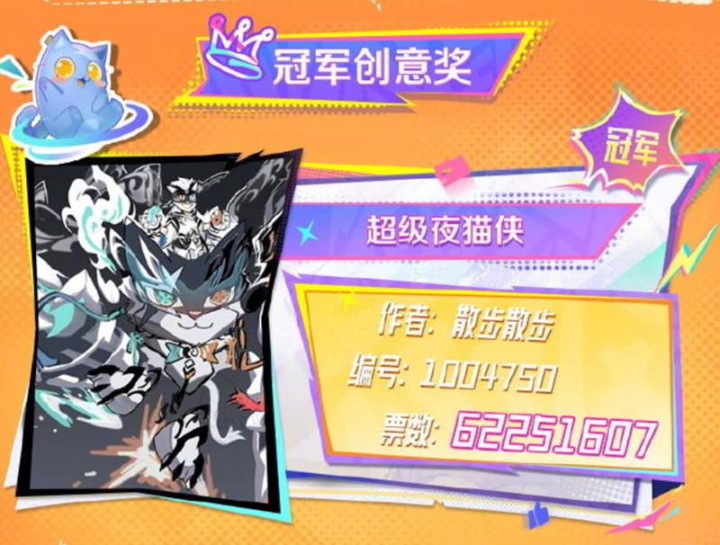 获得“冠军创意奖”的作品是超级夜猫侠。这款皮肤将刘禅设计成一位超级英雄,具有经典的披风元素,搭配猫形机甲和黑白纹路,整体造型帅气且霸气。