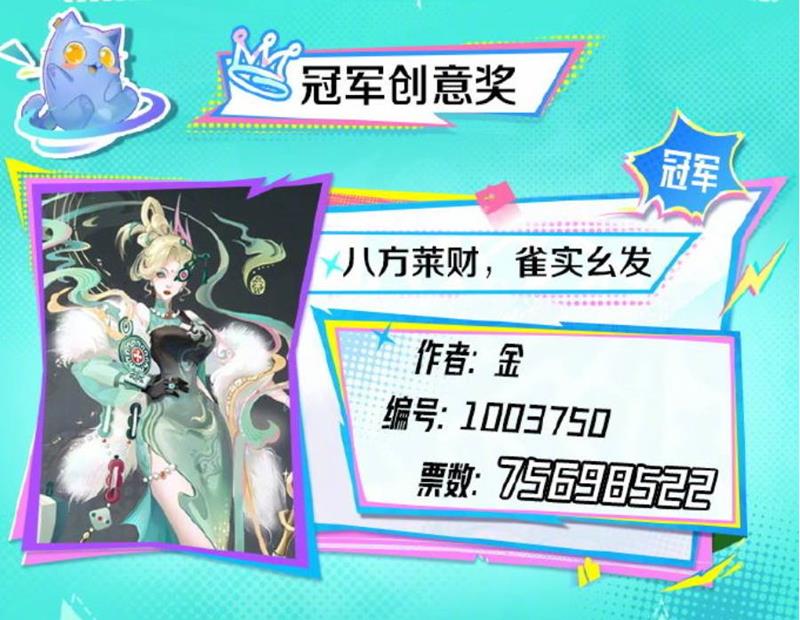 获得“冠军创意奖”的作品是八方莱财。该方案以麻将为主题,将米莱狄设计成一位身穿民国风旗袍的贵妇人,造型雍容富贵,其小兵也变成了麻将,设计独特且有趣。