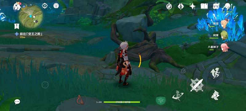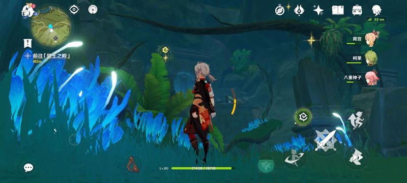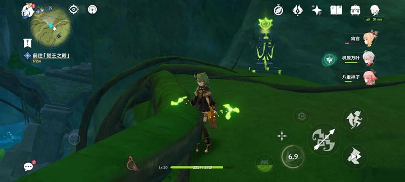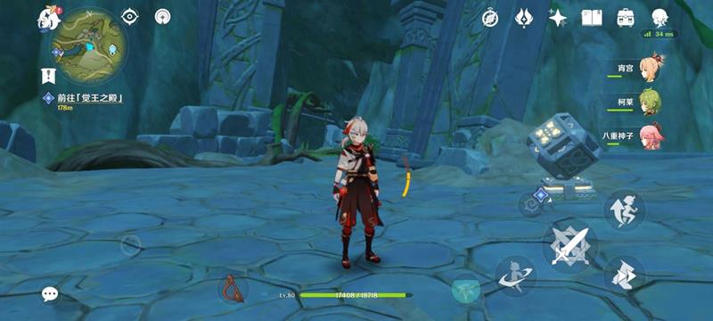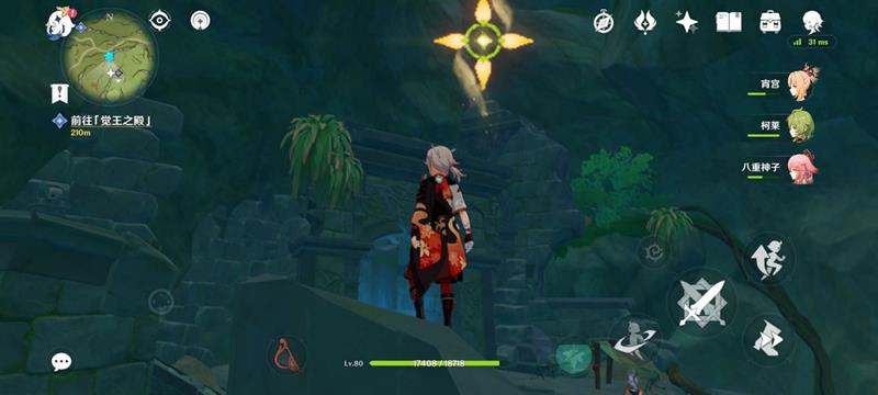 当任务引导旅行者进入觉王之殿时,会发现整个区域被水淹没。首先,传送到觉王之殿附近,飞到下方的平台,可以看到一个机关和一个洞口。