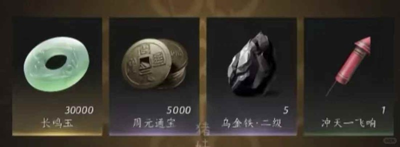 奖励道具:【长鸣玉】×30、【周元通宝】×5000、【乌金铁·二级】×5。