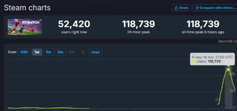 目前测试期的爆炸人气说明,玩家们确实渴望一款既新颖又有竞技潜力的足球游戏。作为一项全球最受欢迎的运动,足球在游戏领域的多样化一直被低估,而《开球!REMATCH》可能正在填补这个空白。《Rematch》正式发售时间为2025年6月19日。