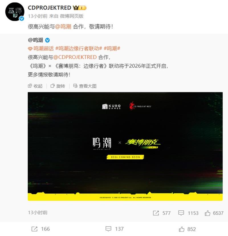 根据官方消息,此次《鸣潮》与《赛博朋克:边缘行者》的联动将于2026年正式开启。虽然目前尚未公布具体的联动内容,但可以预见的是,这将是一次充满创意与惊喜的合作。《鸣潮》以其独特的世界观和丰富的玩法吸引了众多玩家,而《赛博朋克:边缘行者》则以其赛博朋克风格和精彩的剧情赢得了玩家的喜爱。此次联动将如何融合两者的特色,为玩家带来全新的体验,令人期待。