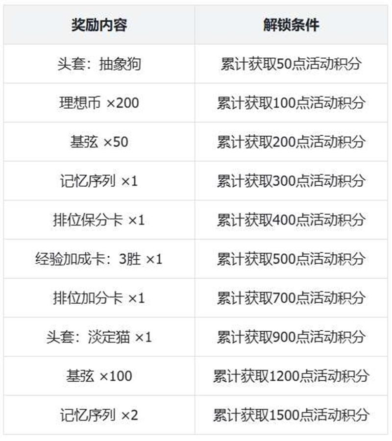 活动期间参与任意模式比赛,完成活动任务累计活动积分,根据积分数量获取奖励!