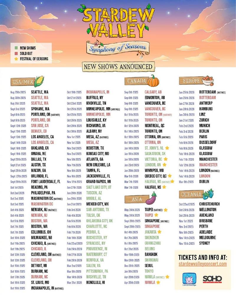 《星露谷物语》的玩家们,一场属于你们的音乐盛宴即将拉开帷幕。《星露谷物语》第二届巡回音乐会“Symphony of Seasons”追加详情公布,中国内地四场演出已正式定档。